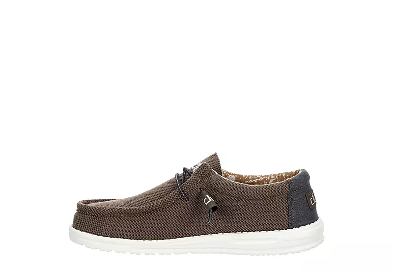 Relax into your passion with the HEYDUDE Wally Stretch men’s slip-on sneaker. With a stretchy, breathable textile upper featuring elastic laces for a secure fit and Flex & Fold technology, this slip-on shoe is machine washable for easy maintenance. The removable Memory Foam insole and leather lining offer ergonomic comfort and cushioning, while the ultralight outsole sets you free to explore unfettered.