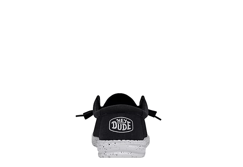 Relax into your passion with the HEYDUDE Wally Slub Canvas men’s slip-on sneaker. With a vintage-looking canvas upper featuring a cushioned ankle collar and Flex & Fold technology, this sneaker also has elastic laces for a secure fit. The removable Memory Foam insole and leather-lining comforts your foot, while the ultralight outsole sets you free to explore unfettered.